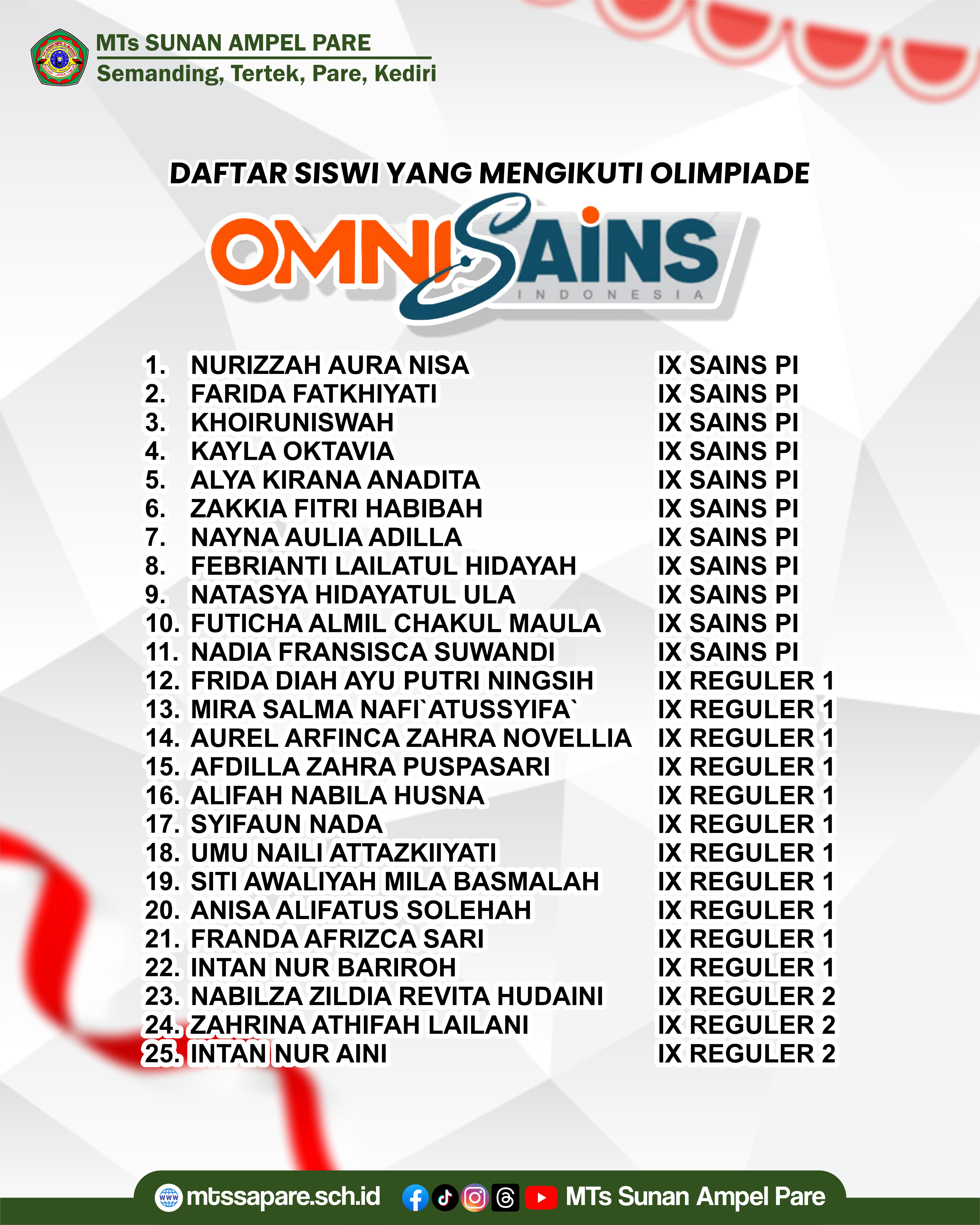MTs SUNAN AMPEL PARE DELEGASIKAN SISWA DALAM OLIMPIADE OMNI SAINS 2025